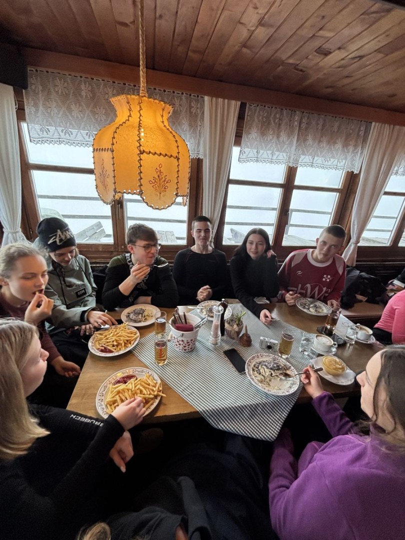 Po całym dniu na stoku czekało na nas pyszne jedzenie, ciepło hotelowych wnętrz i wieczory pełne rozmów, śmiechu oraz integracji. To właśnie wtedy rodziły się nowe przyjaźnie, wspomnienia i legendy, które będą wspominane jeszcze długo po powrocie do szkoły.