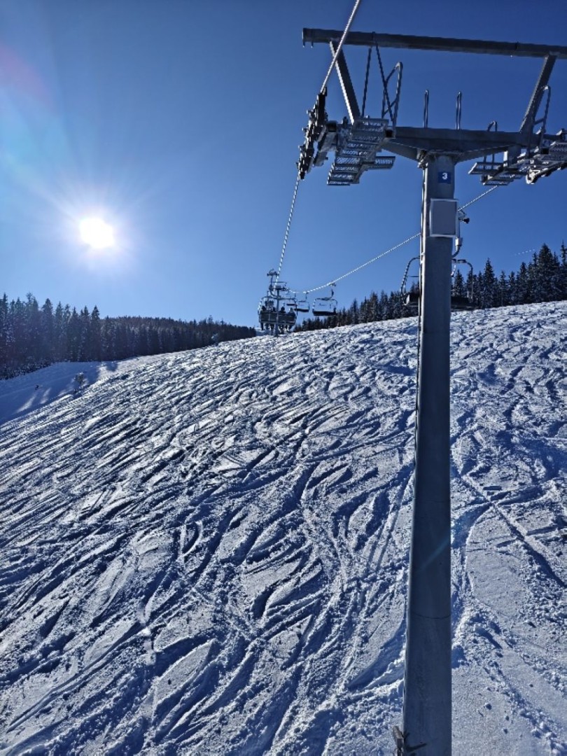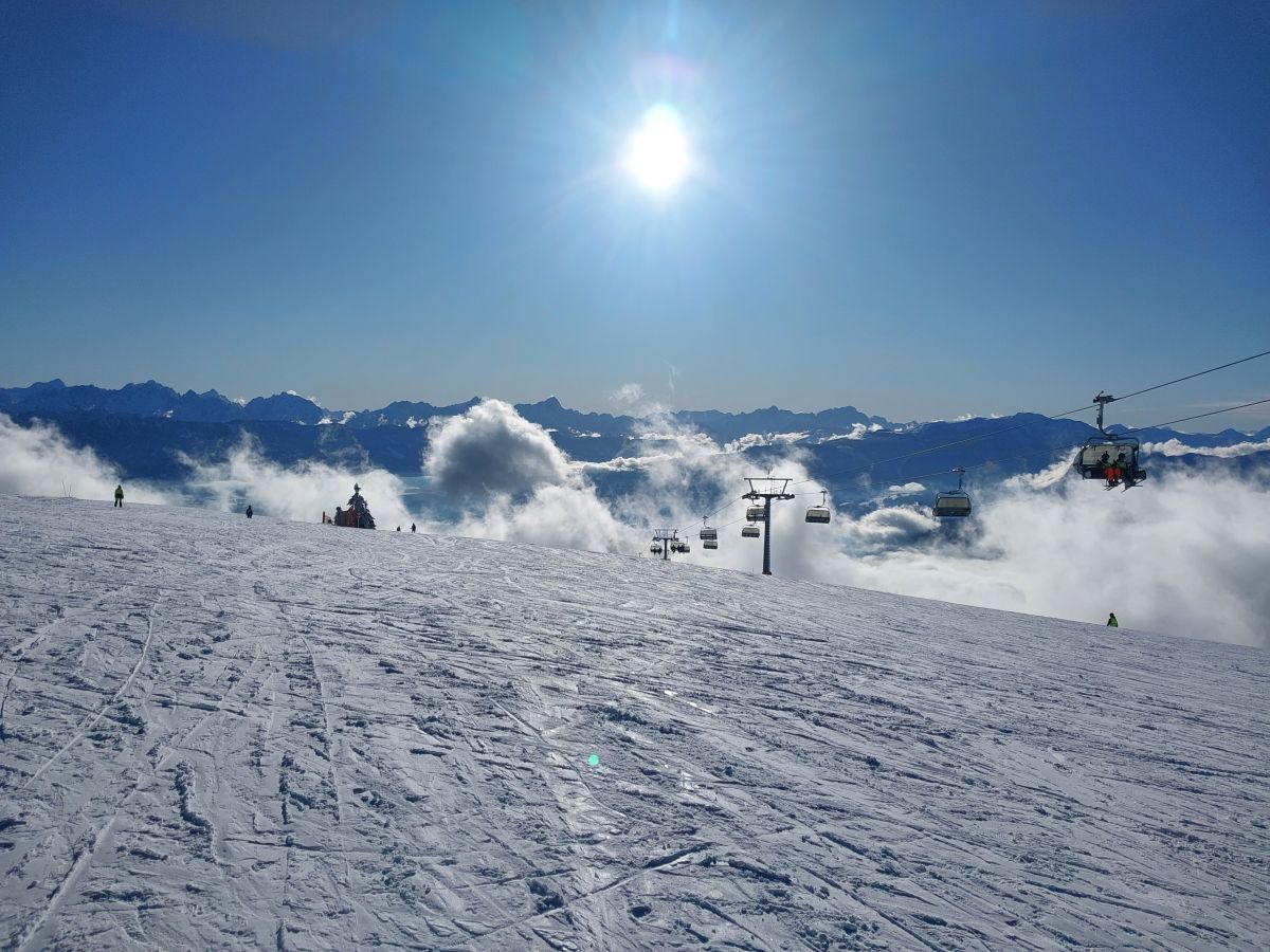 Alpejska aura rozpieszczała nas każdego dnia – pełne słońce, błękitne niebo i widoki jak z pocztówki. Momentami było tak pięknie, że aż chciało się zatrzymać na stoku… tylko po to, żeby zrobić zdjęcie i jechać dalej.