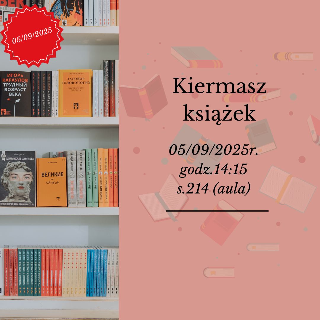 Zapraszamy zainteresowanych nabywców i sprzedawców na kiermasz podręczników używanych w piątek, 5 września 2025r. o godz. 14:15 do auli (sala 214). Zainteresowanych sprzedażą prosimy o przygotowanie swojego stoiska, otagowanie podręczników ceną i danymi sprzedającego. Zainteresowanych kupnem prosimy o przygotowanie gotówki.