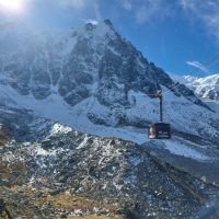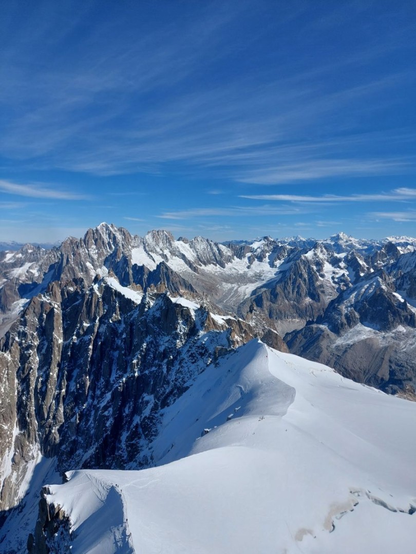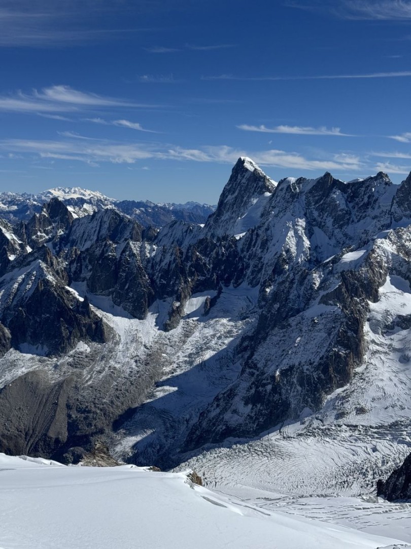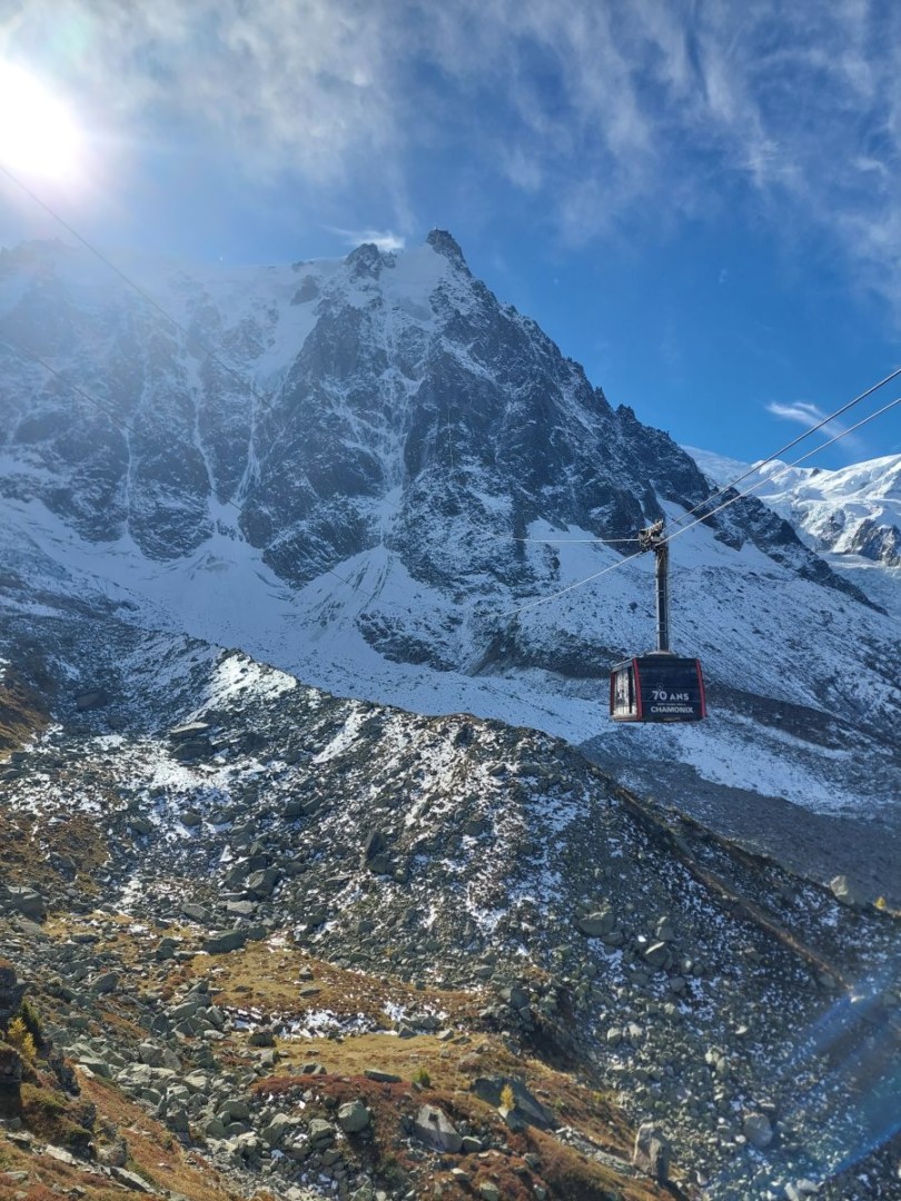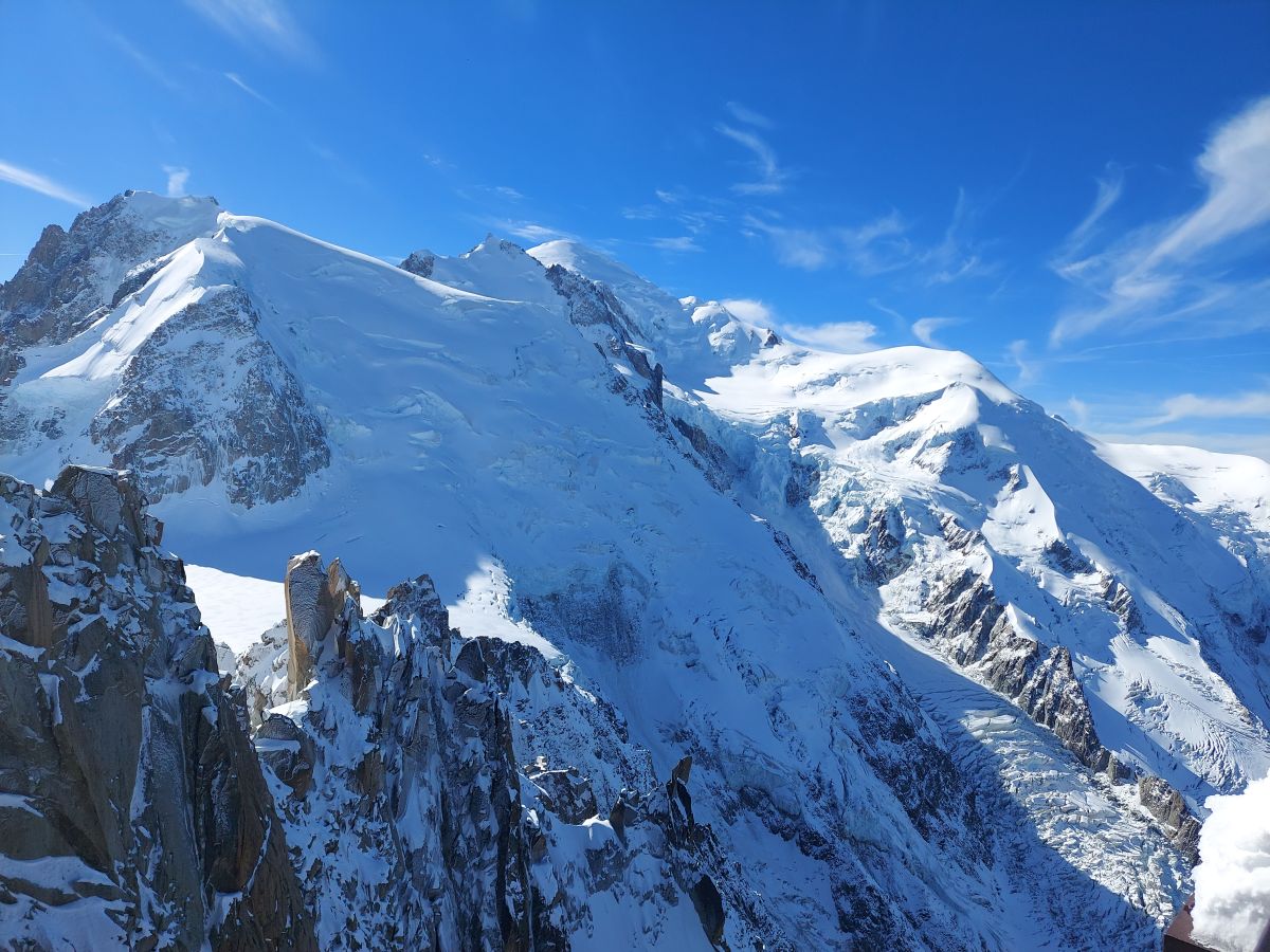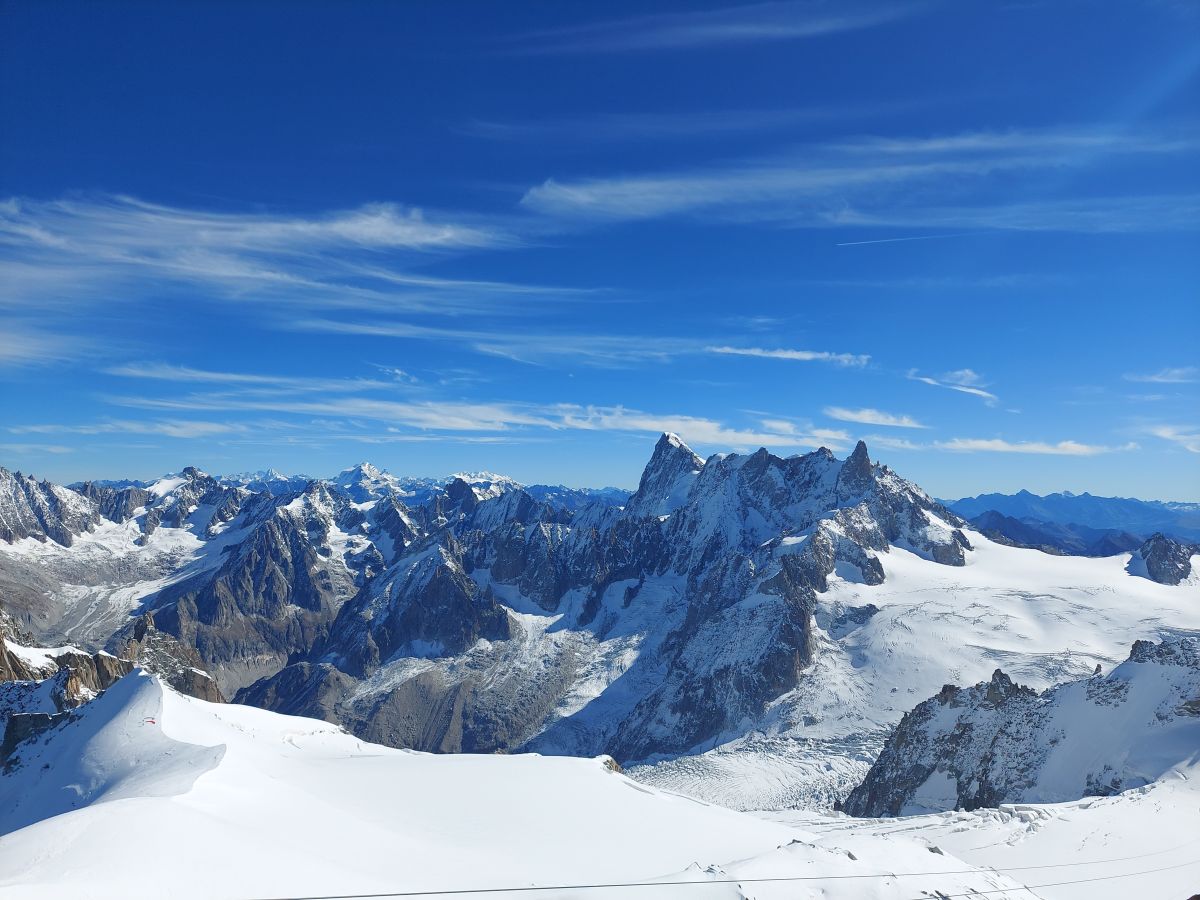 Punktem kulminacyjnym naszej szwajcarskiej wyprawy był…przejazd do Francji i możliwość zobaczenia na własne oczy masywu Mont Blanc, z najwyższym w Europie szczytem. Już sam wjazd kolejką na Aiguille di Midi dostarczył nam ekstremalnych wrażeń. W stosunkowo krótkim czasie przenieśliśmy się w świat śniegu i lodu. Obezwładniający krajobraz górski nie pozwalał nam jednak pamiętać o jakimkolwiek zimnie.