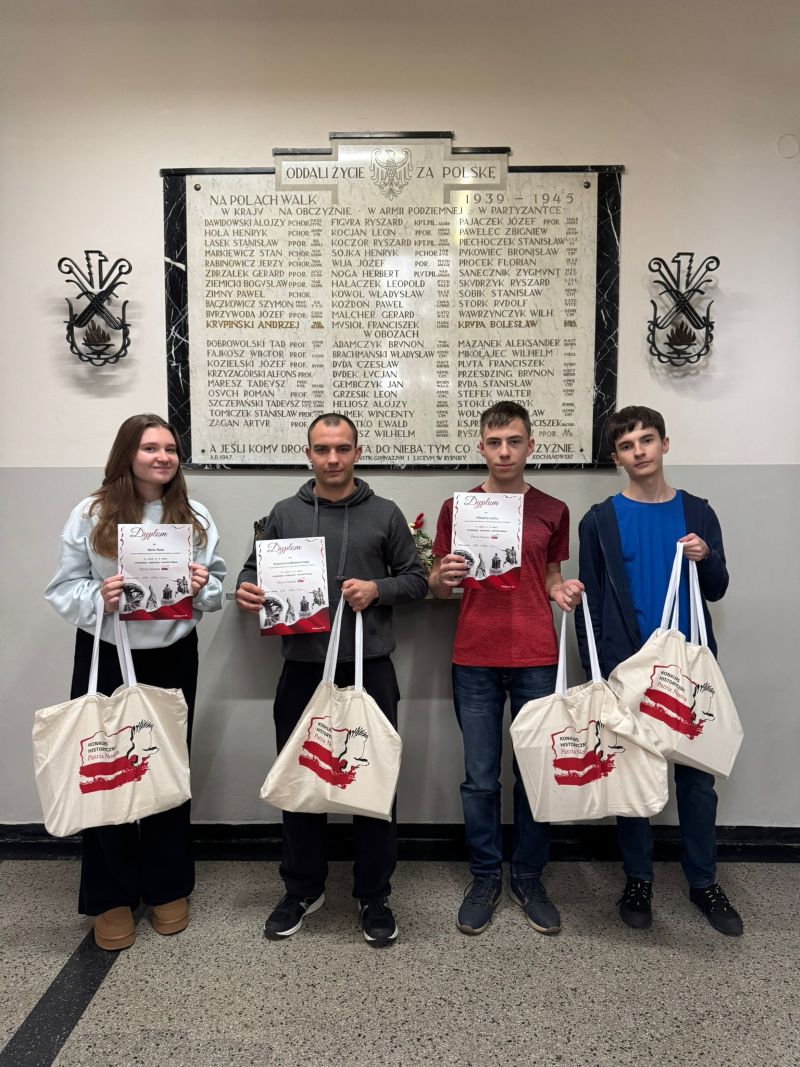 Miło nam poinformować, że zespół uczniów z klasy 3i w składzie: Maja Rose, Oliwier Lach, Wiktor Szala oraz Krzesimir Wawoczny zdobył wyróżnienie w ogólnopolskim konkursie historyczno-filmowym Patria Nostra. Opiekę merytoryczną nad projektem sprawował nauczyciel historii – pan Rafał Morawiec.