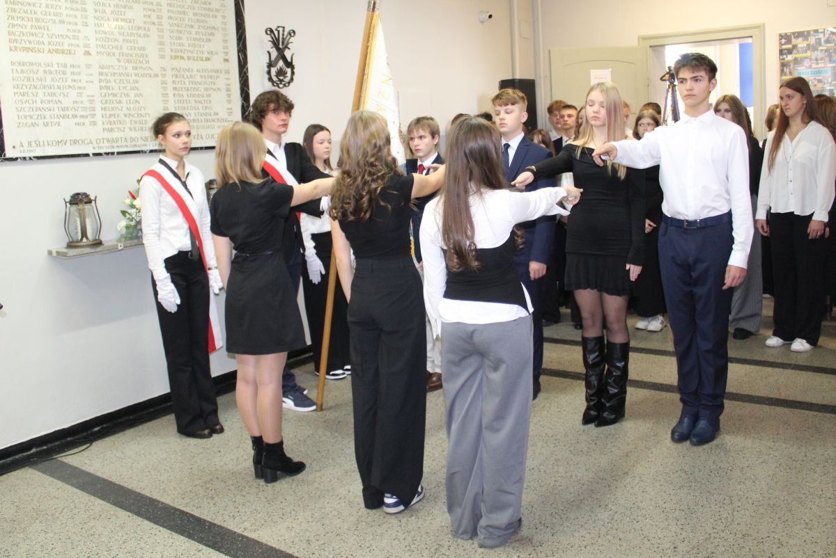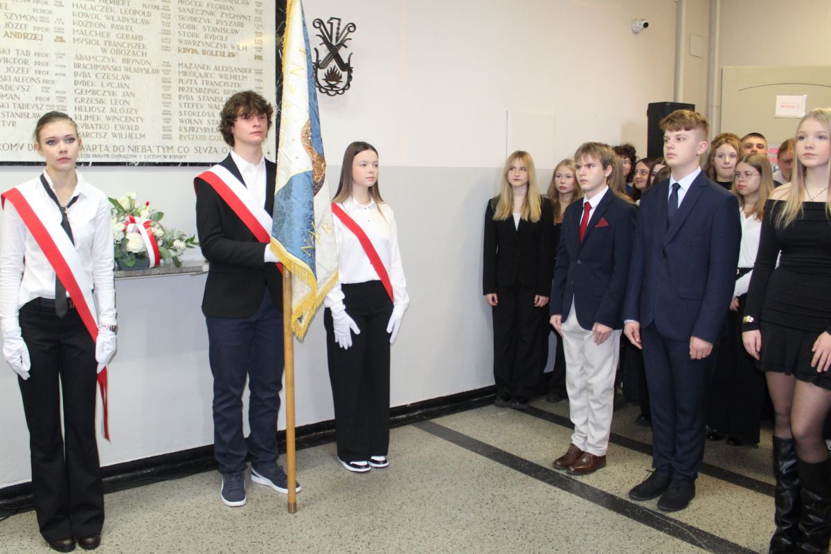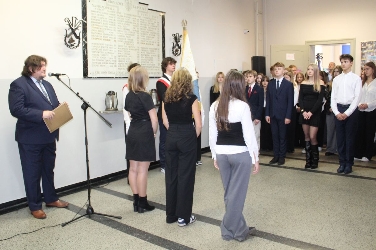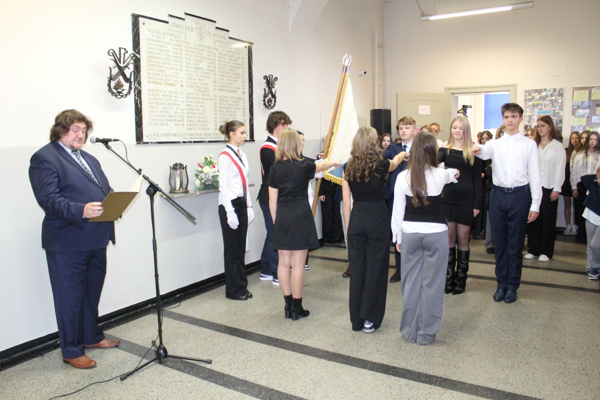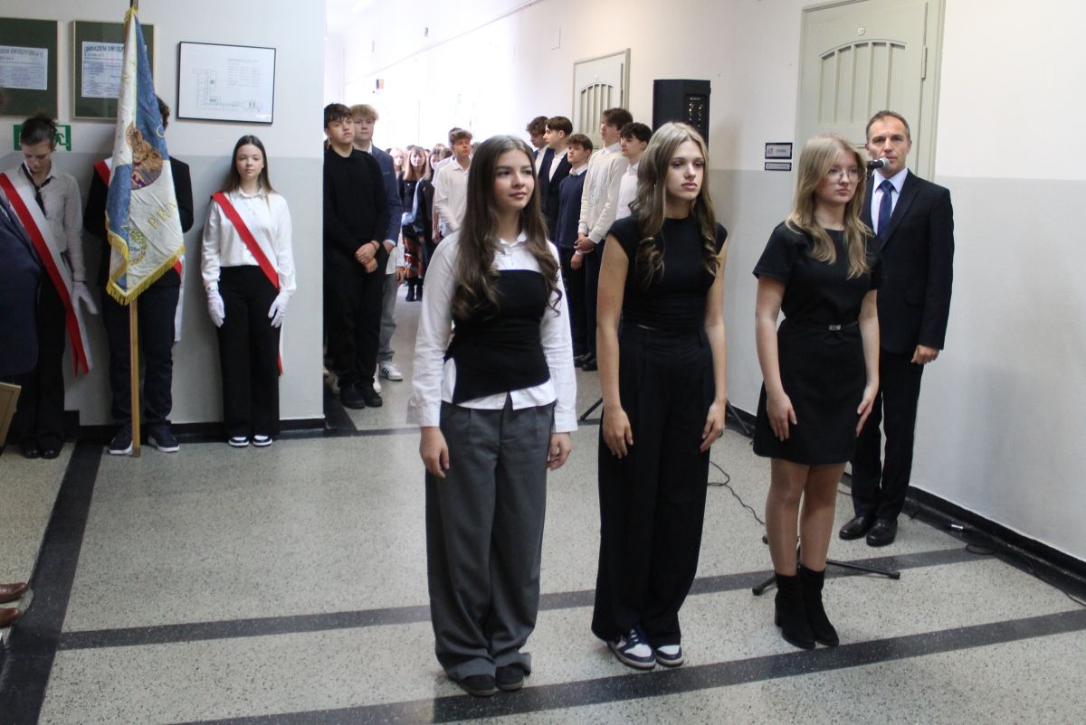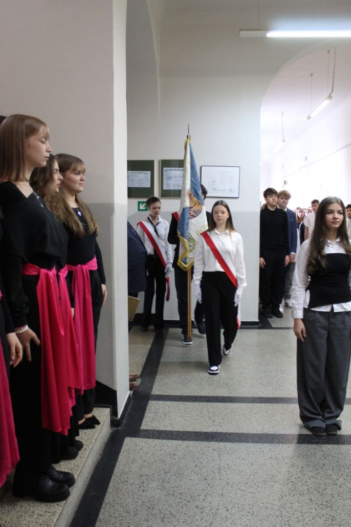 W wydarzeniu uczestniczyli dyrektor Tadeusz Chrószcz, nauczyciele, uczniowie klas pierwszych, rodzice oraz poczet sztandarowy szkoły. Uroczystość uświetnił występ szkolnego chóru Bel Canto pod dyrekcją Iwony Remiorz.
