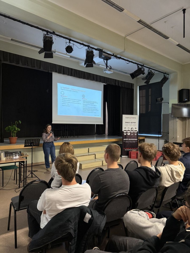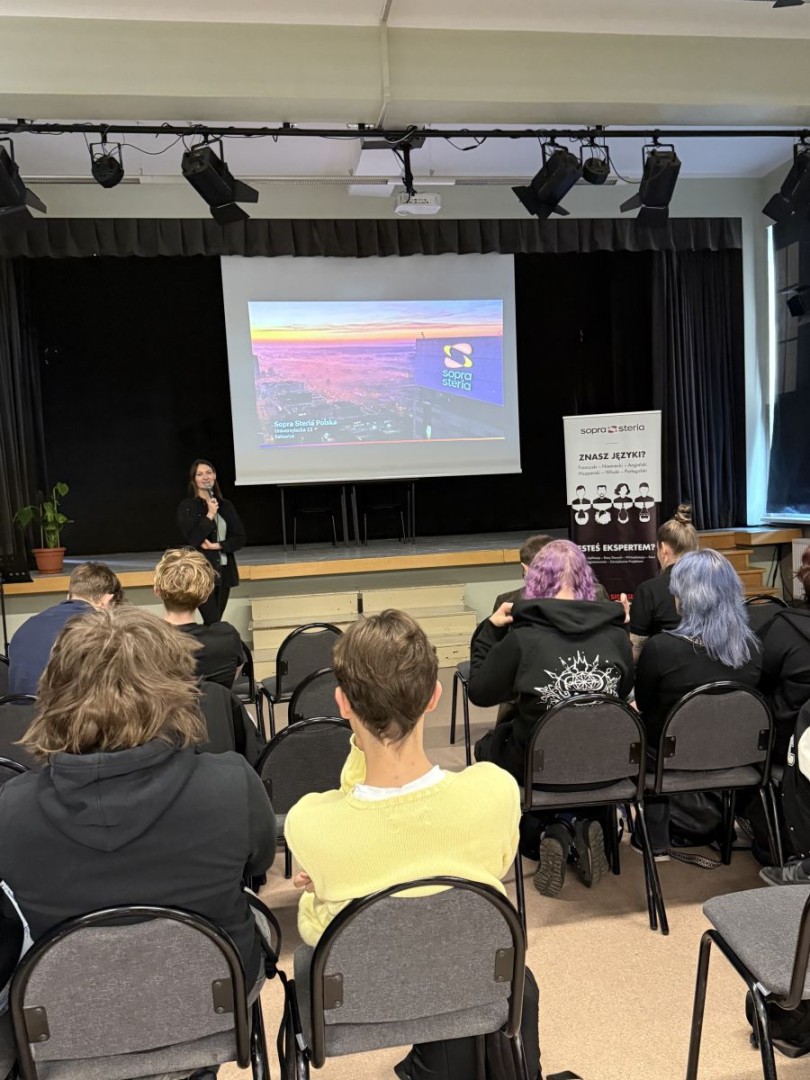 W piątek, 7 listopada, uczniowie klas 4F i 4E uczestniczyli w wyjątkowym spotkaniu z przedstawicielami firmy Sopra Steria z oddziału w Katowicach. Sopra Steria to międzynarodowa firma technologiczna specjalizująca się w usługach IT, transformacji cyfrowej oraz doradztwie biznesowym.
