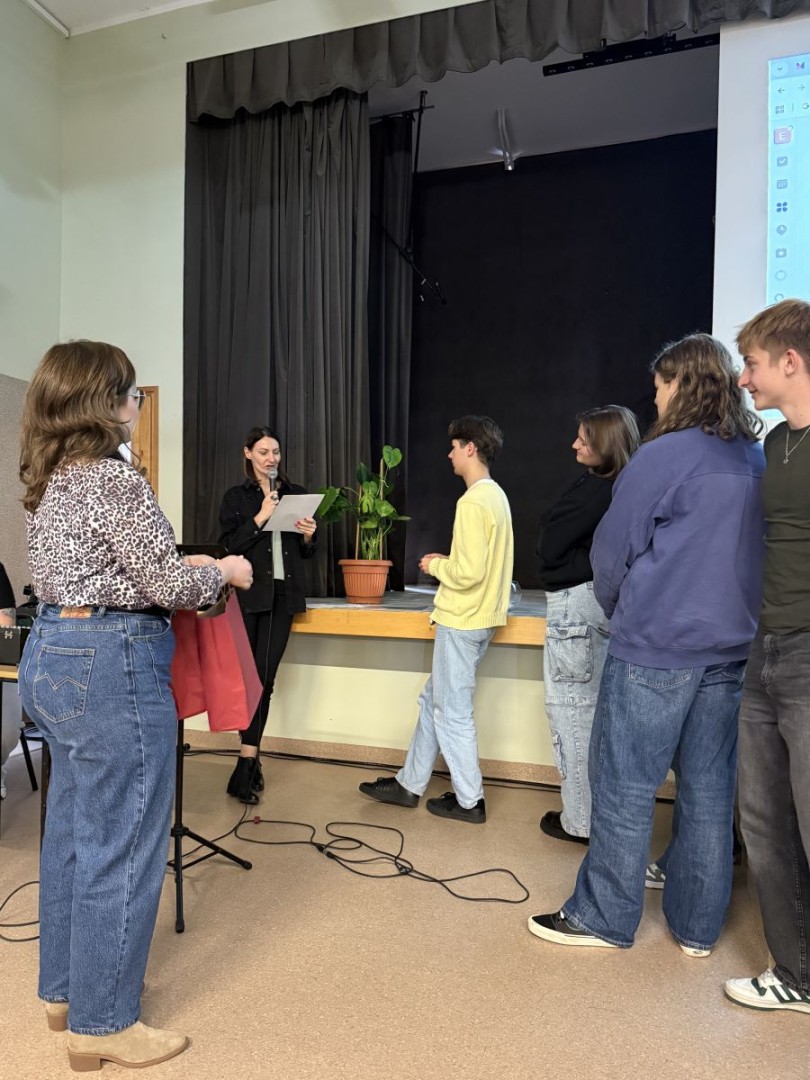 Na zakończenie wydarzenia przeprowadzono quiz z nagrodami dla chętnych uczniów, który pozwolił utrwalić zdobyte informacje i zapewnił odrobinę zdrowej rywalizacji.