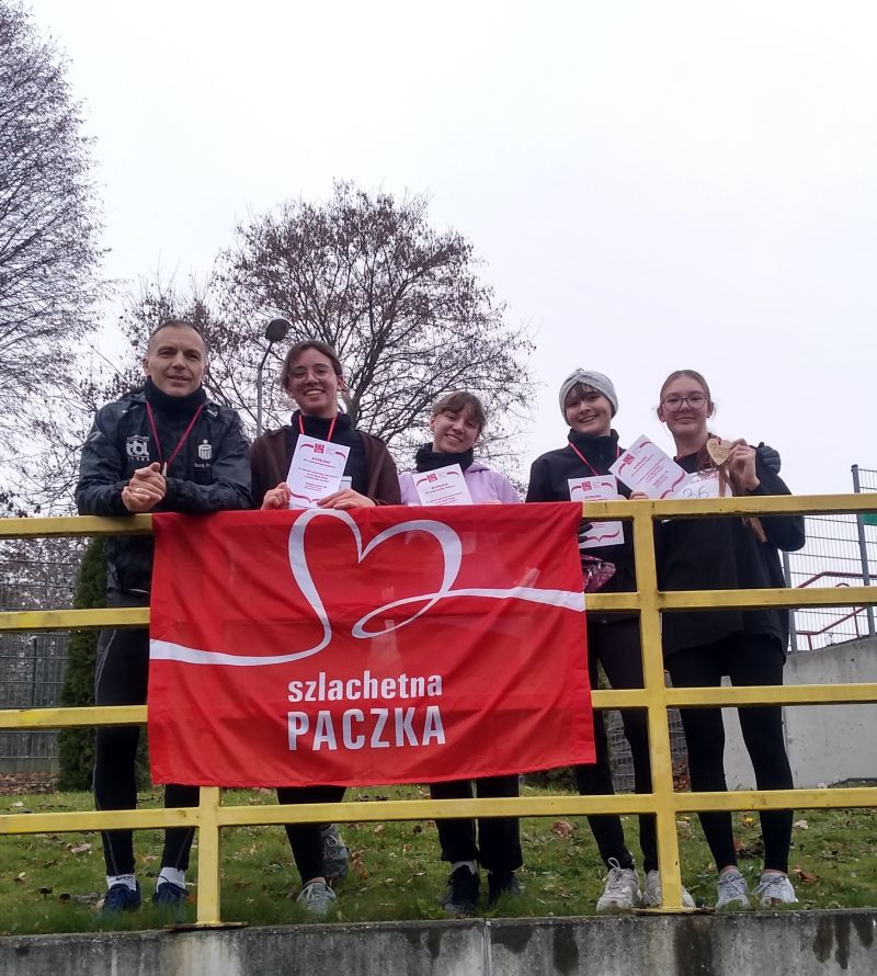 W dniu 8 listopada 2025 r. mimo deszczowej aury na stadionie lekkoatletycznym w Rybniku znowu pojawiły się osoby, które pokonały ( biegiem, truchtem lub marszem ) dystans 2 km, aby wspomóc wspaniałą akcję charytatywną Szlachetną Paczkę. I jak zawsze organizatorzy zadbali o świetną, gorącą atmosferę, a także przygotowali dla wszystkich na mecie dyplom i okolicznościowy medal oraz ciepłą herbatę i przepyszne domowej roboty smakołyki. Naszą szkołę reprezentowały: Nadia Guzenda, Julia Stanko, Zuzanna Karpierz, Natalia Lesisz.