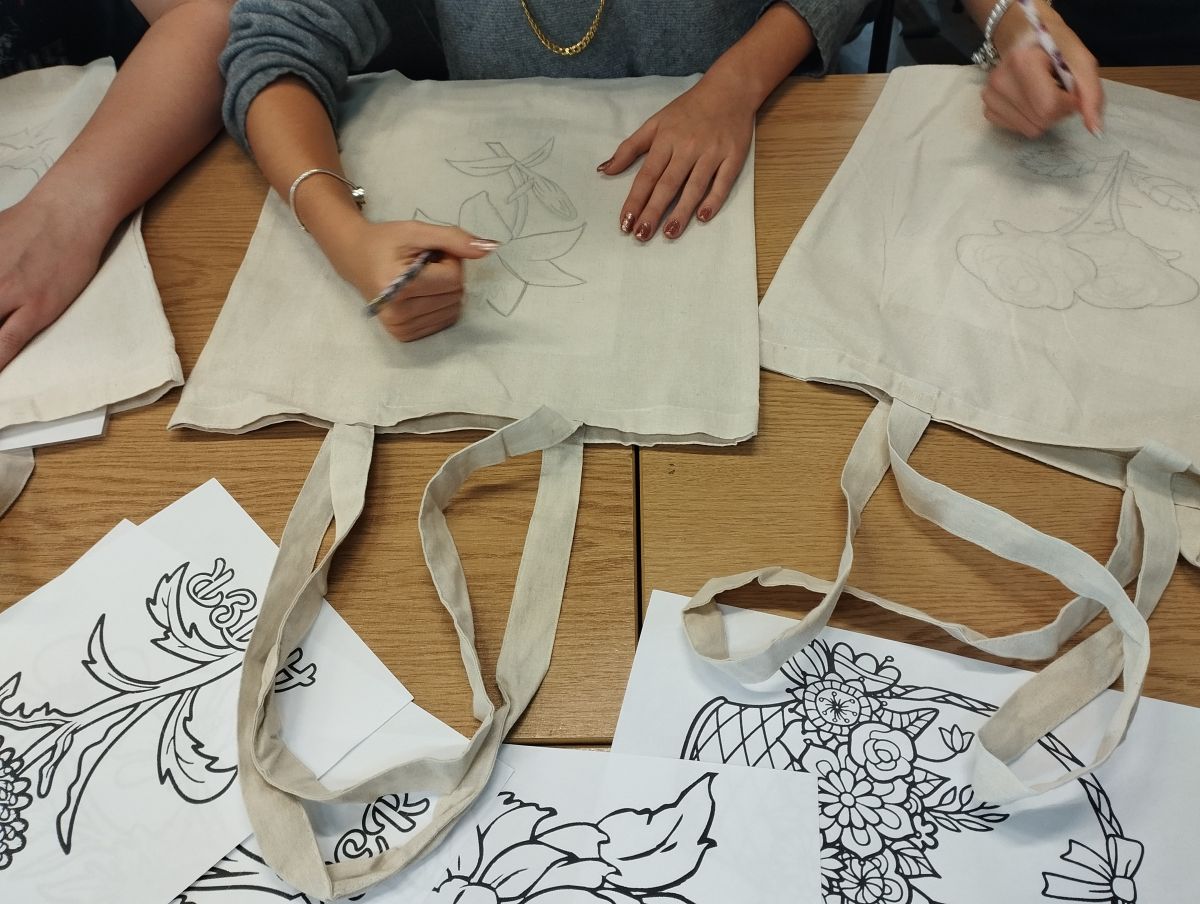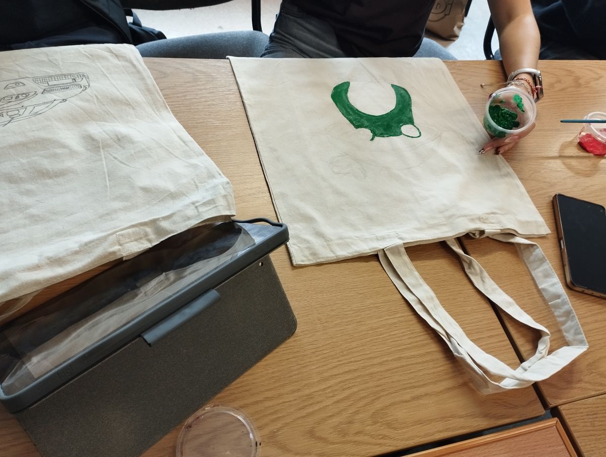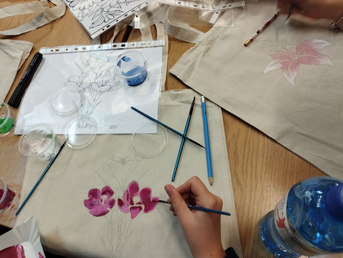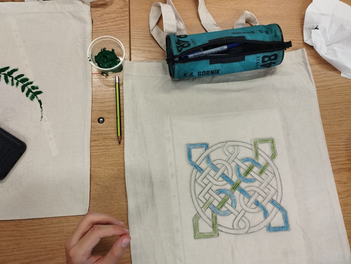 Następnie odbyły się warsztaty, podczas których uczniowie malowali ekologiczne torby, promując w ten sposób ideę ograniczania plastiku i dbania o środowisko naturalne. Uczniowie wykazali się ogromną kreatywnością, a ich prace zachwycały kolorami i pomysłowością.