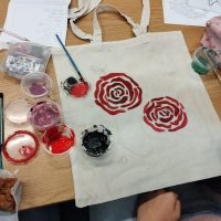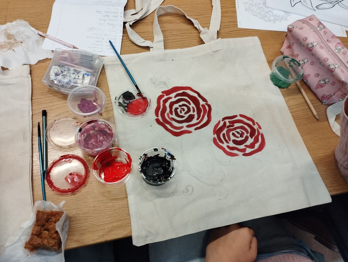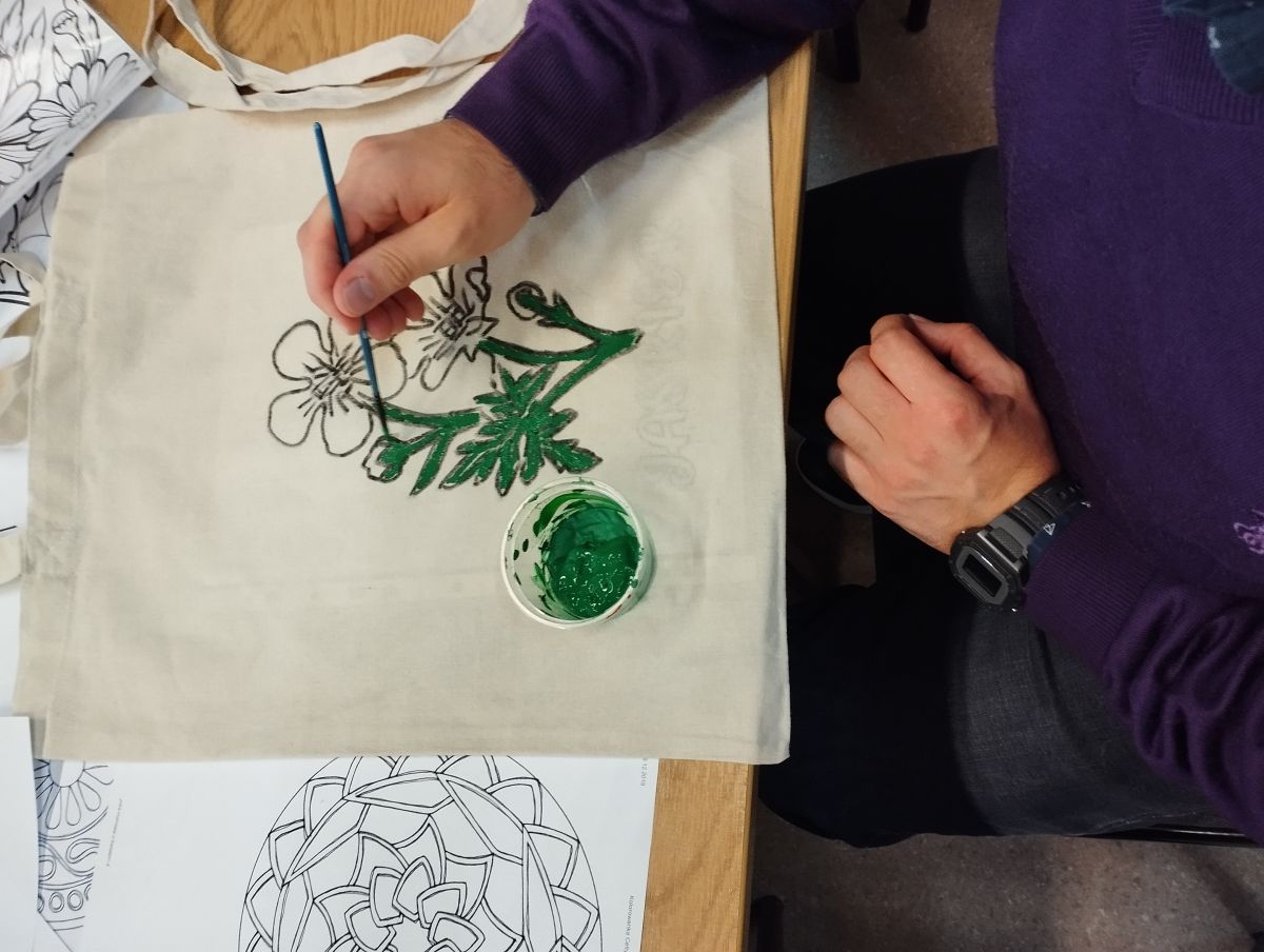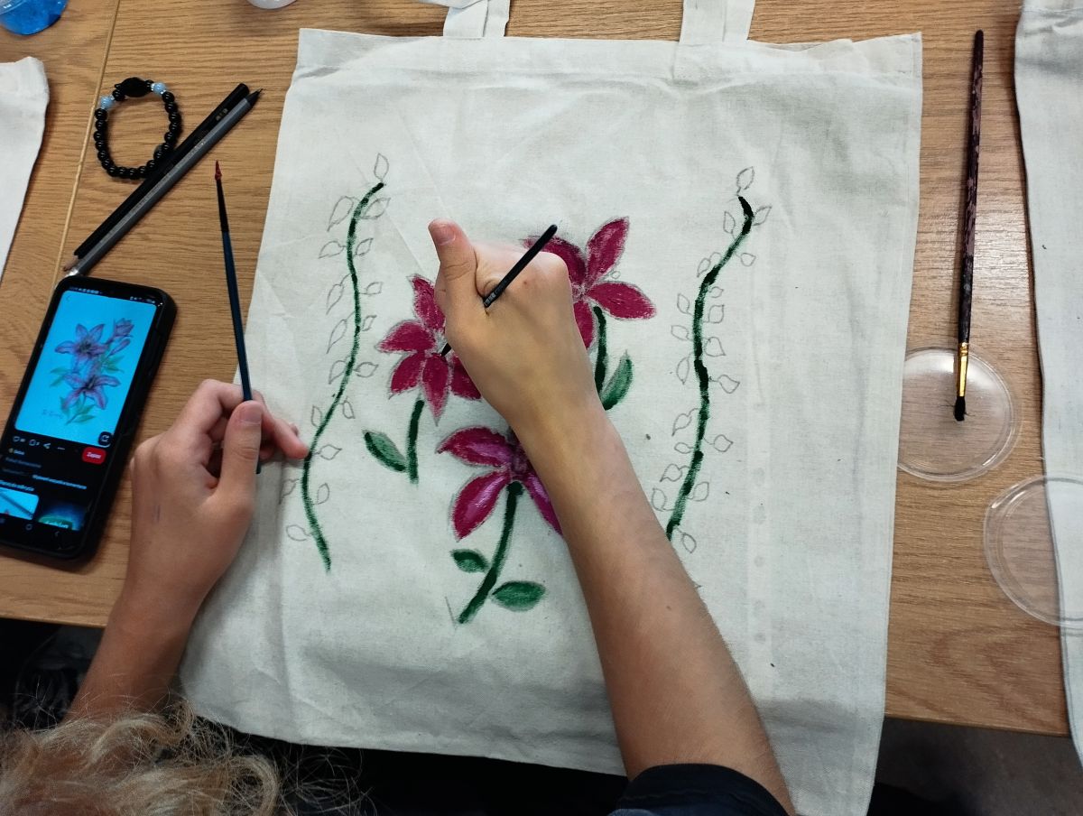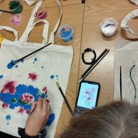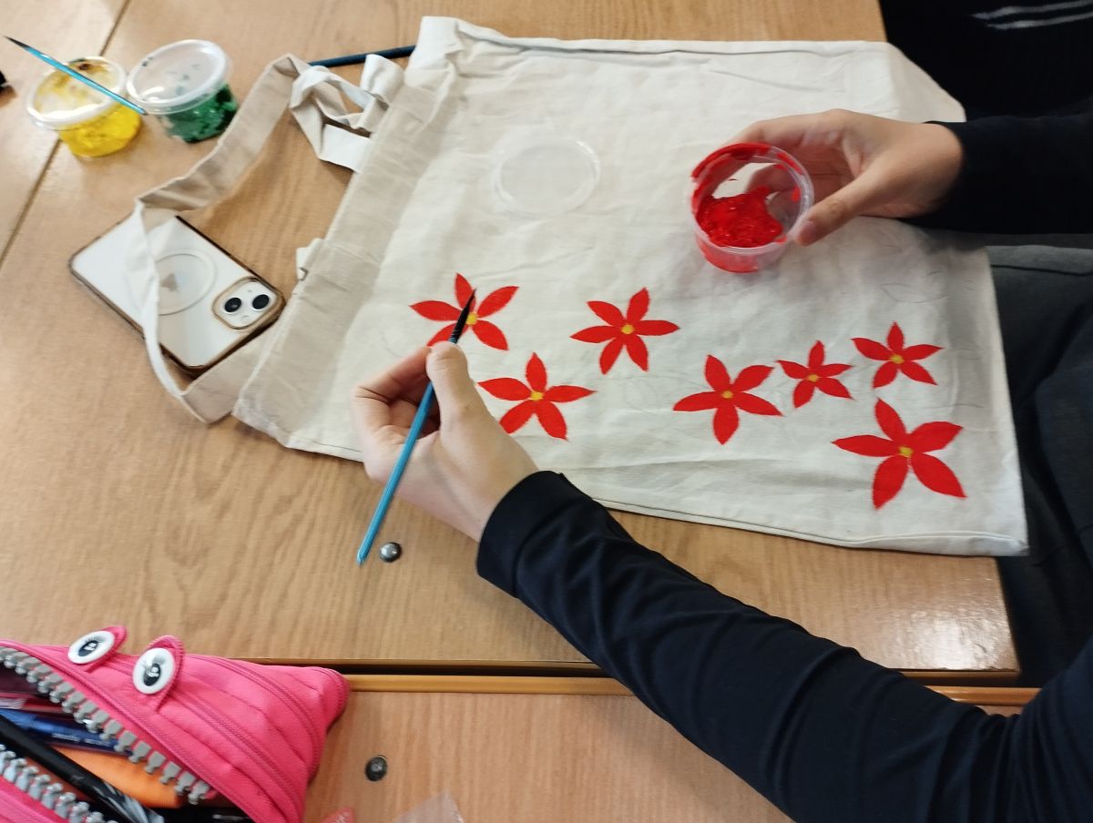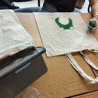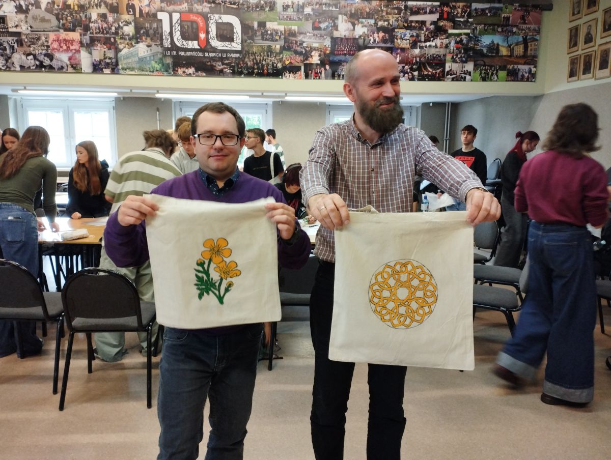Następnie odbyły się warsztaty, podczas których uczniowie malowali ekologiczne torby, promując w ten sposób ideę ograniczania plastiku i dbania o środowisko naturalne. Uczniowie wykazali się ogromną kreatywnością, a ich prace zachwycały kolorami i pomysłowością.