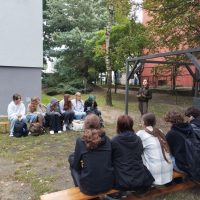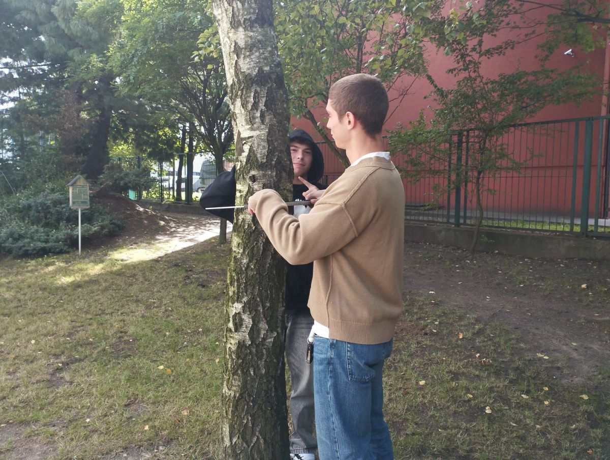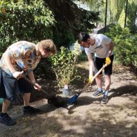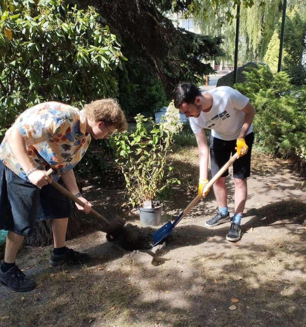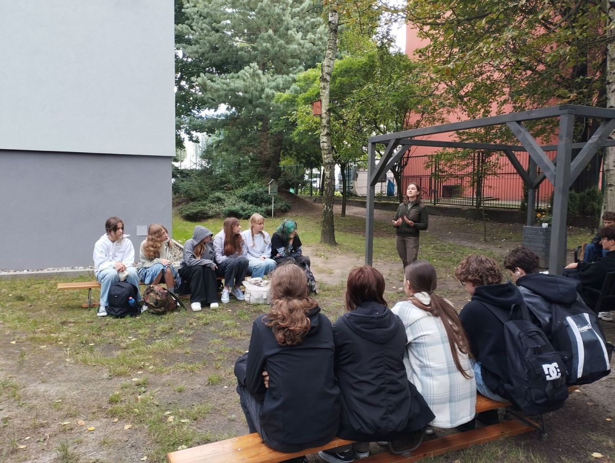 Na początku nowego roku szkolnego klasa 4g wzbogaciła ogród o kolejne nasadzenia, zwiększając bioróżnorodność tego zielonego zakątka. 18 września 2025 r. odbyły się inauguracyjne warsztaty dla klas 4g i 1b, prowadzone przez panią leśnik Paulinę Sobczuk. Uczniowie poznawali gatunki drzew – szczególnie te rosnące w szkolnym ogrodzie – oraz uczyli się ich pomiaru przy użyciu klupy. Na zakończenie dnia posadzono wrzosy, dodając miejscu jeszcze więcej koloru i naturalnego uroku.
