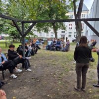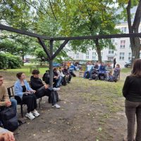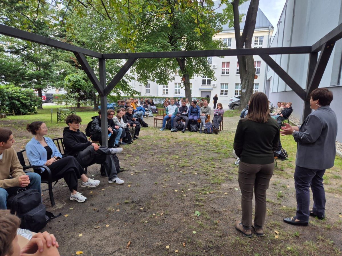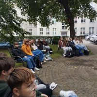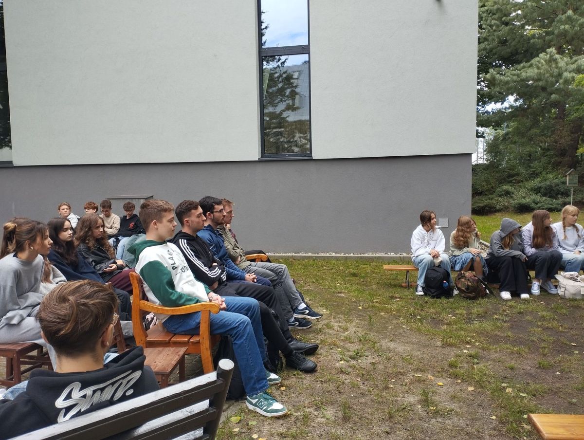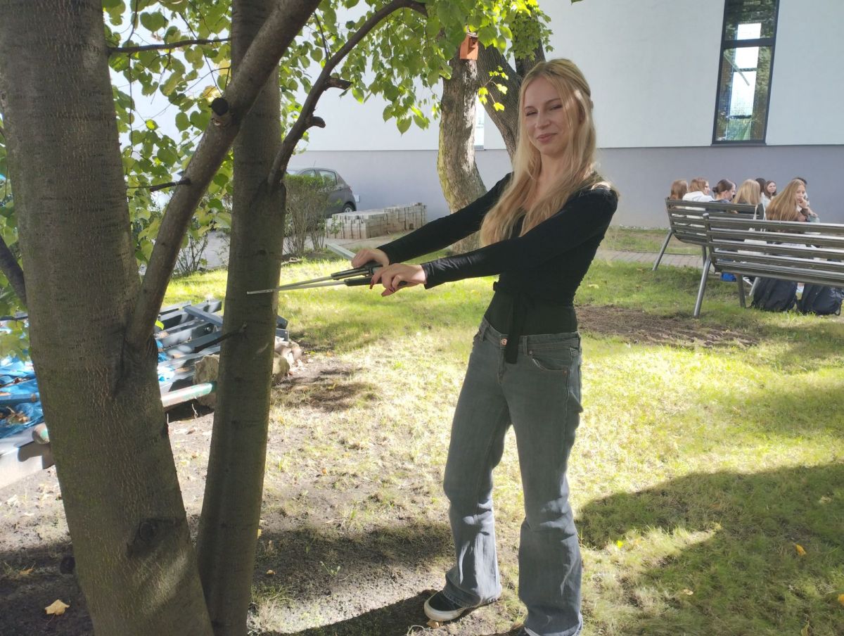 Na początku nowego roku szkolnego klasa 4g wzbogaciła ogród o kolejne nasadzenia, zwiększając bioróżnorodność tego zielonego zakątka. 18 września 2025 r. odbyły się inauguracyjne warsztaty dla klas 4g i 1b, prowadzone przez panią leśnik Paulinę Sobczuk. Uczniowie poznawali gatunki drzew – szczególnie te rosnące w szkolnym ogrodzie – oraz uczyli się ich pomiaru przy użyciu klupy. Na zakończenie dnia posadzono wrzosy, dodając miejscu jeszcze więcej koloru i naturalnego uroku.